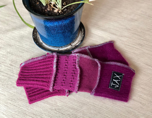 Upcycled Fall mix Plum and pea sweaters Fingerless texting glov