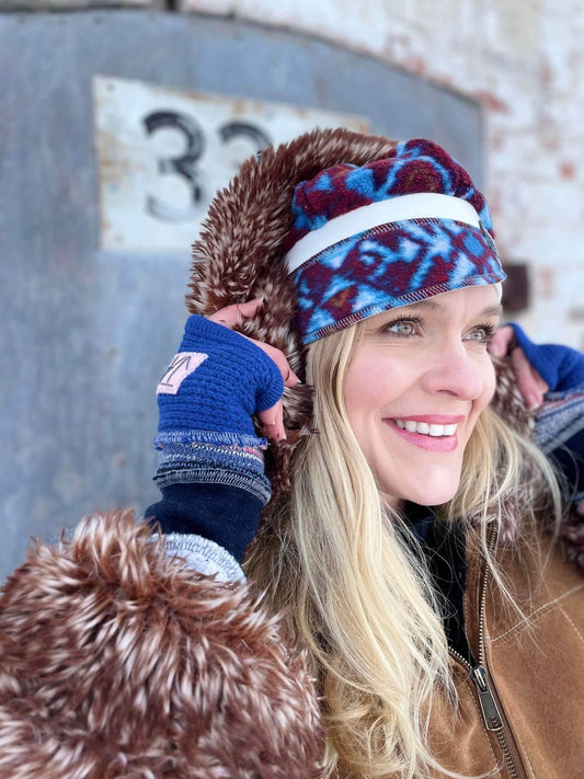 Upcycled mix Teal and Navy sweaters Fingerless texting gloves