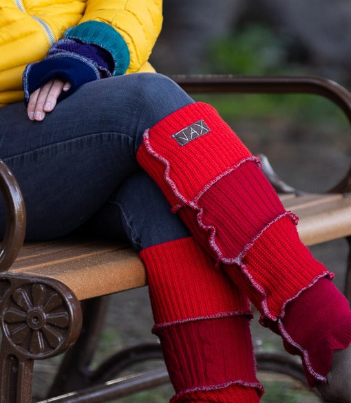 Upcycled Fall mix Red and Grey sweaters Fingerless texting gloves