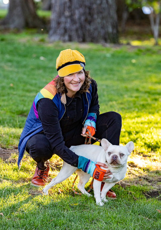 Upcycled color block mix Color sweaters Fingerless texting gloves