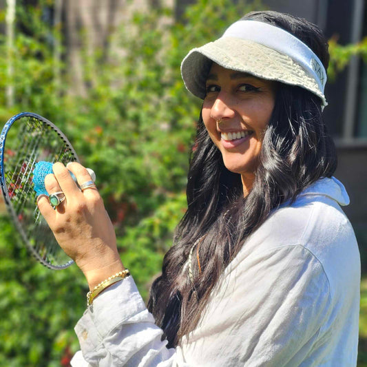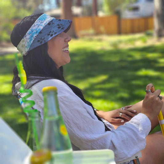 Upcycled Blue floral cord with fun floral band Sun Visor