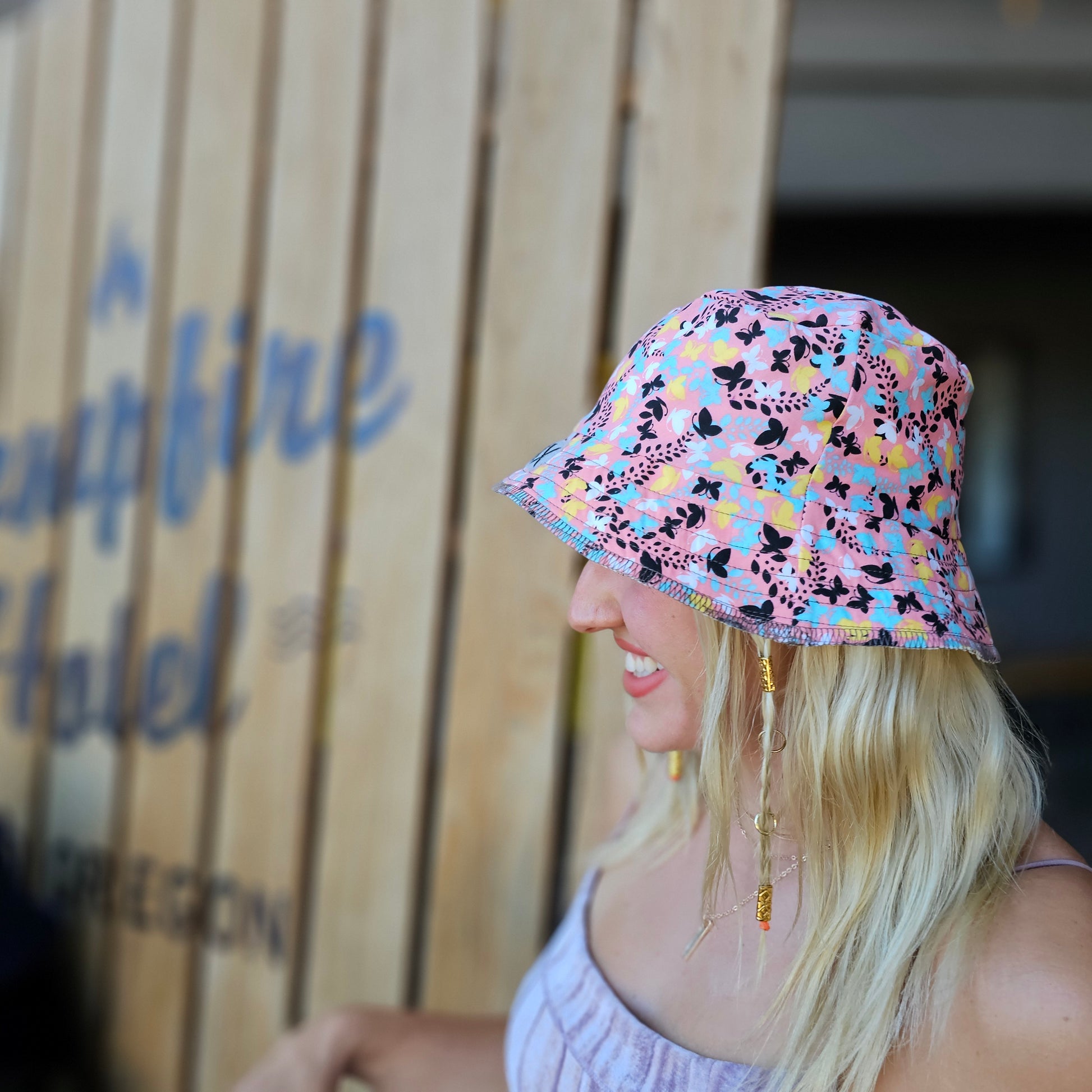 Adult summer hat. One of a kind handmade with recycled clothing and materials. Reversible! The inside may vary slightly.