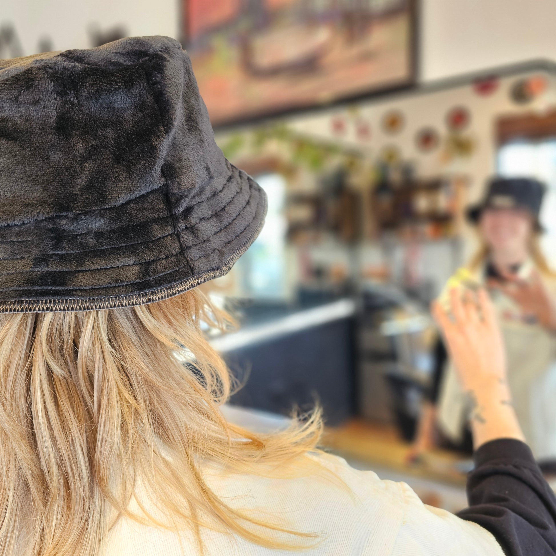 Upcycled fuzzies turned into an Adult OS bucket reversible