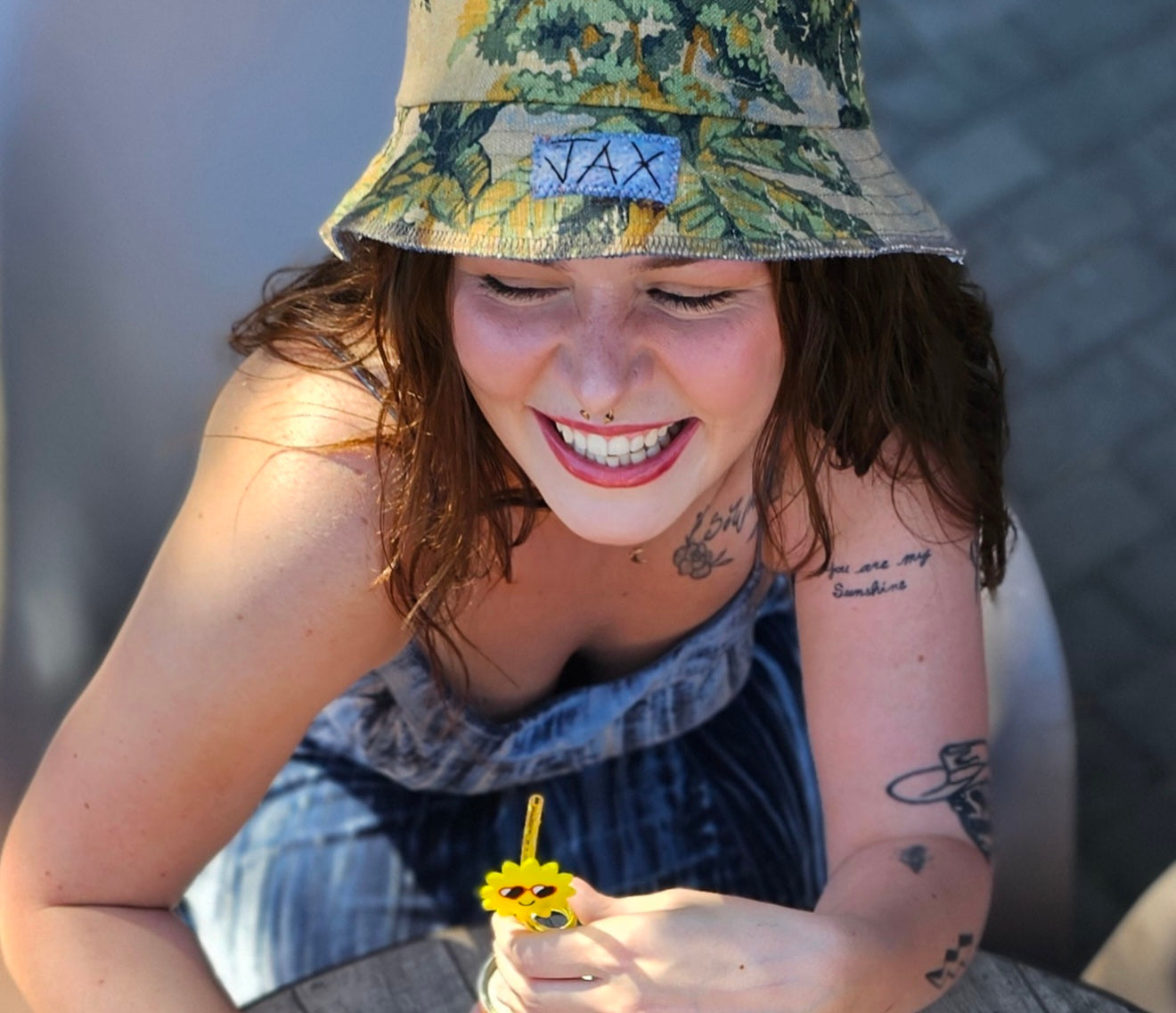 Adult summer hat. One of a kind handmade with recycled clothing and materials. Reversible! The inside may vary slightly.