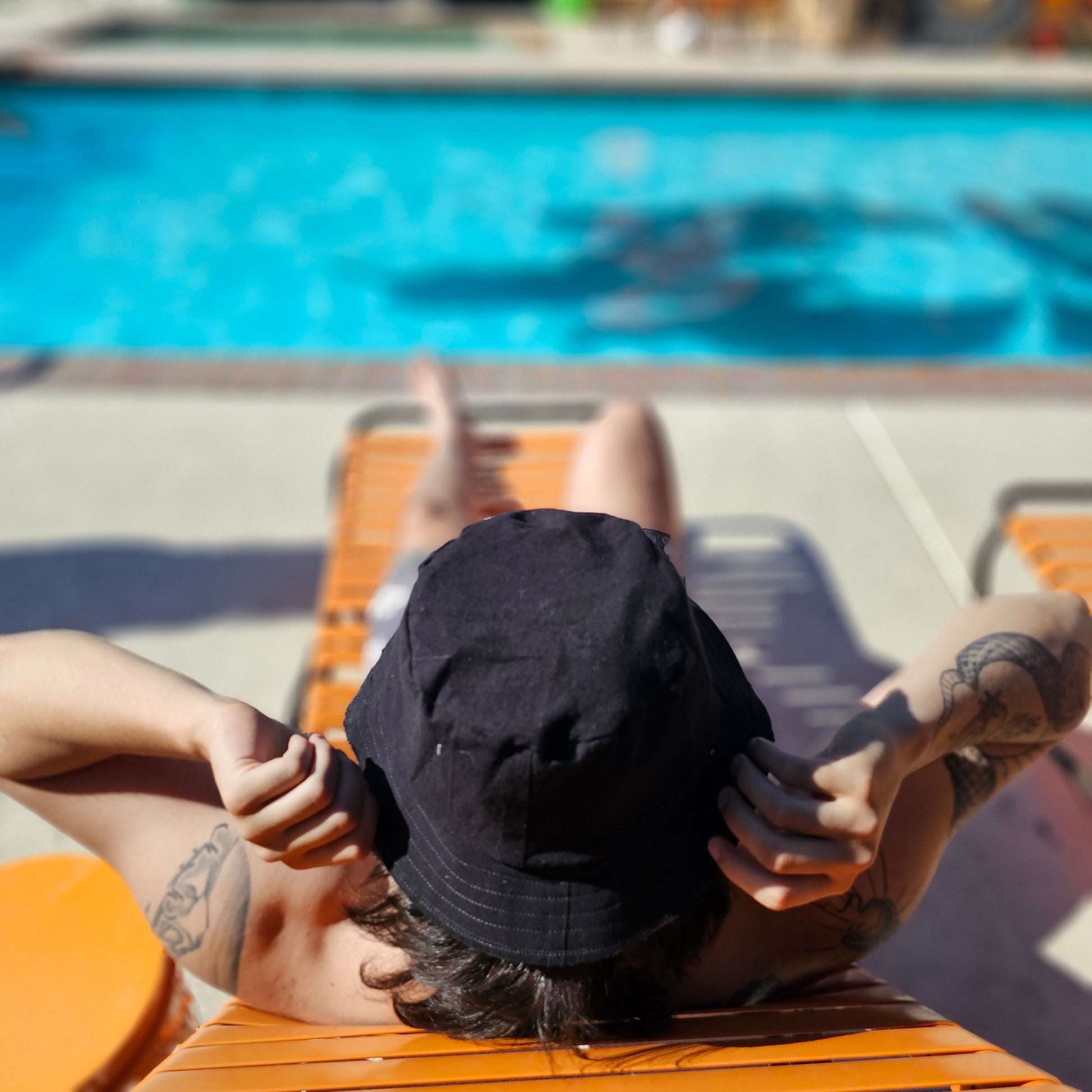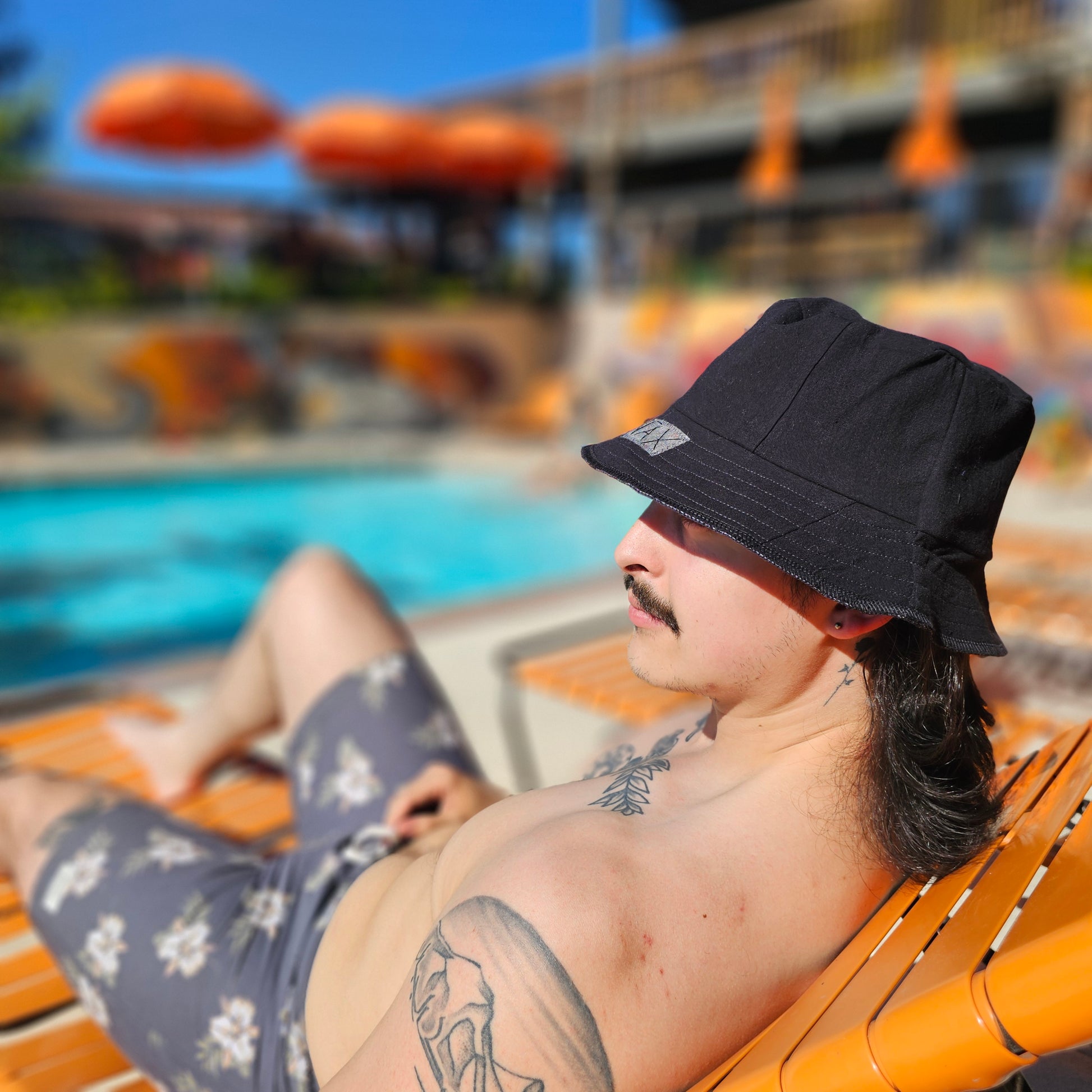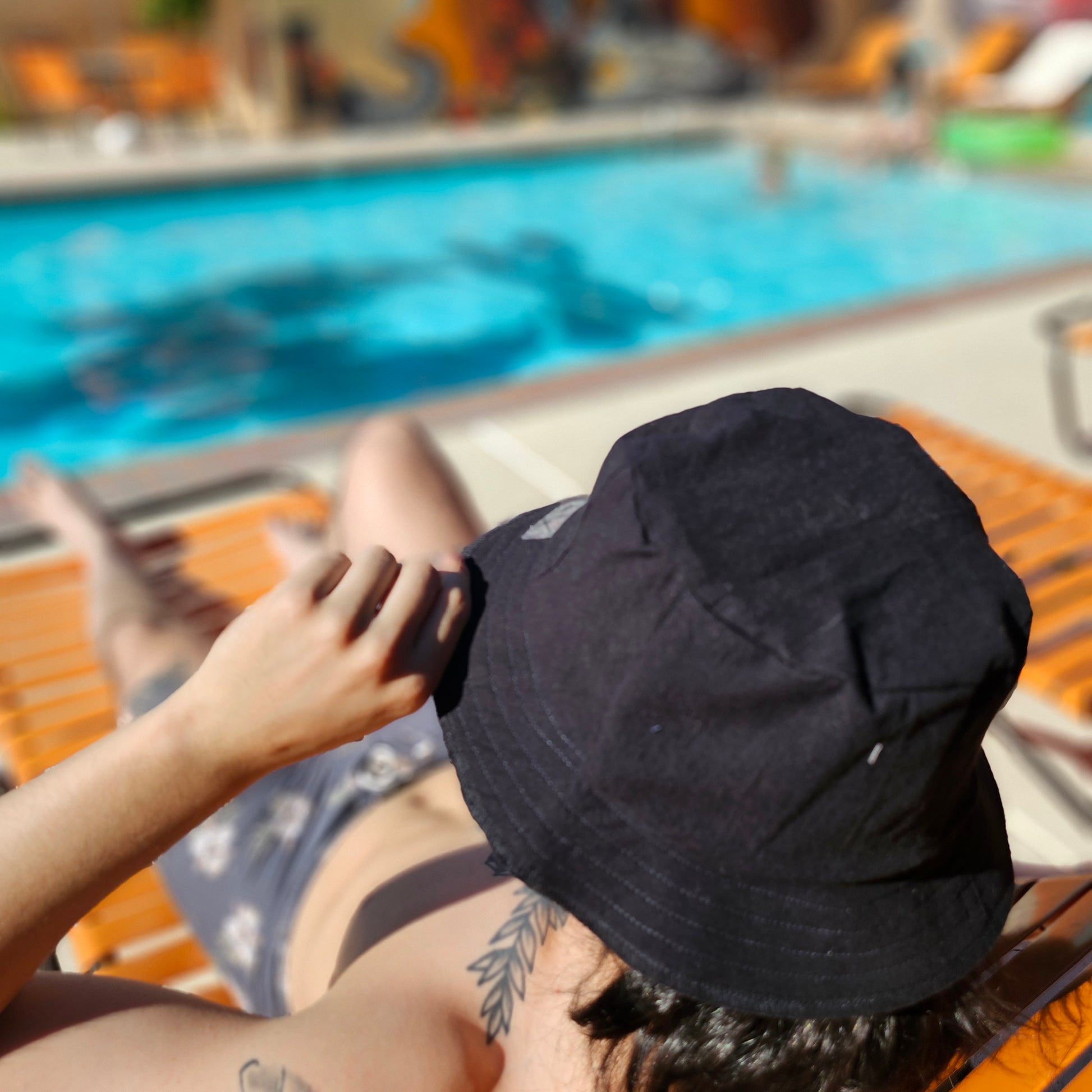 Upcycled Plain Black pants turned into an Adult OS bucket