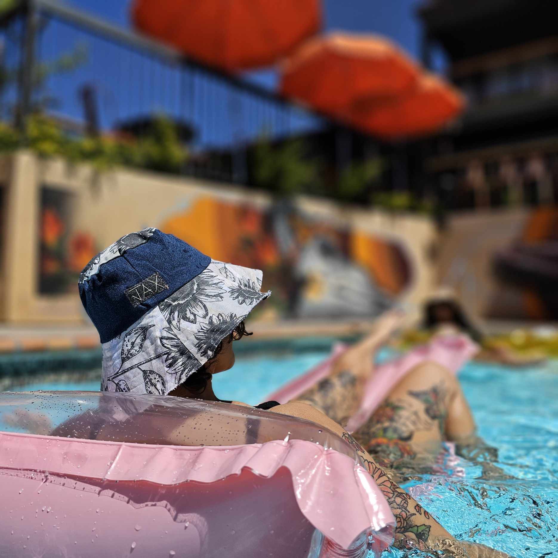 Upcycled print Canvas Black and White sunflower JAX Sun hat